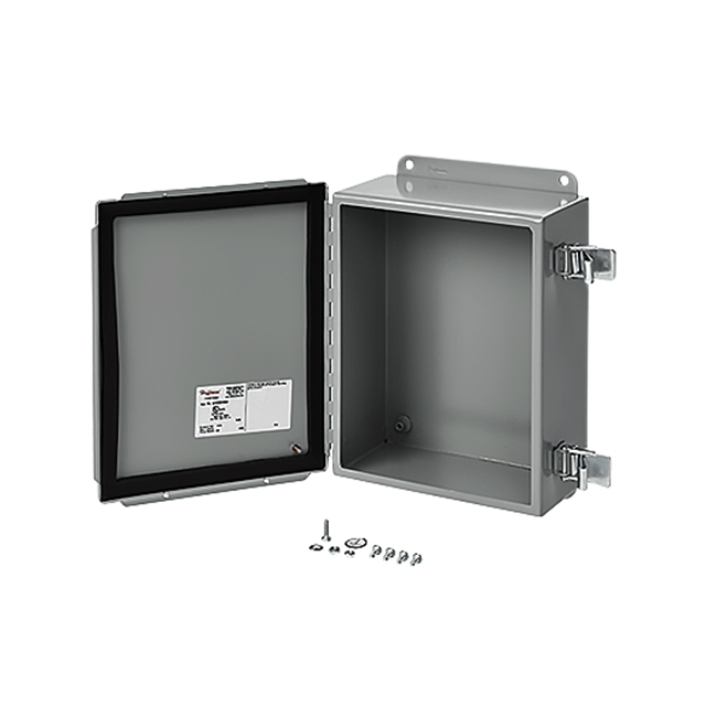 Deskribapen zehatza Junction Box Metal, Steel Gray Hinged Door, Lid 7.992" L x 5.984" W (203.00mm x 152.00mm) X 3.504" (89.00mm) Diseinua Hinged Door, Lid